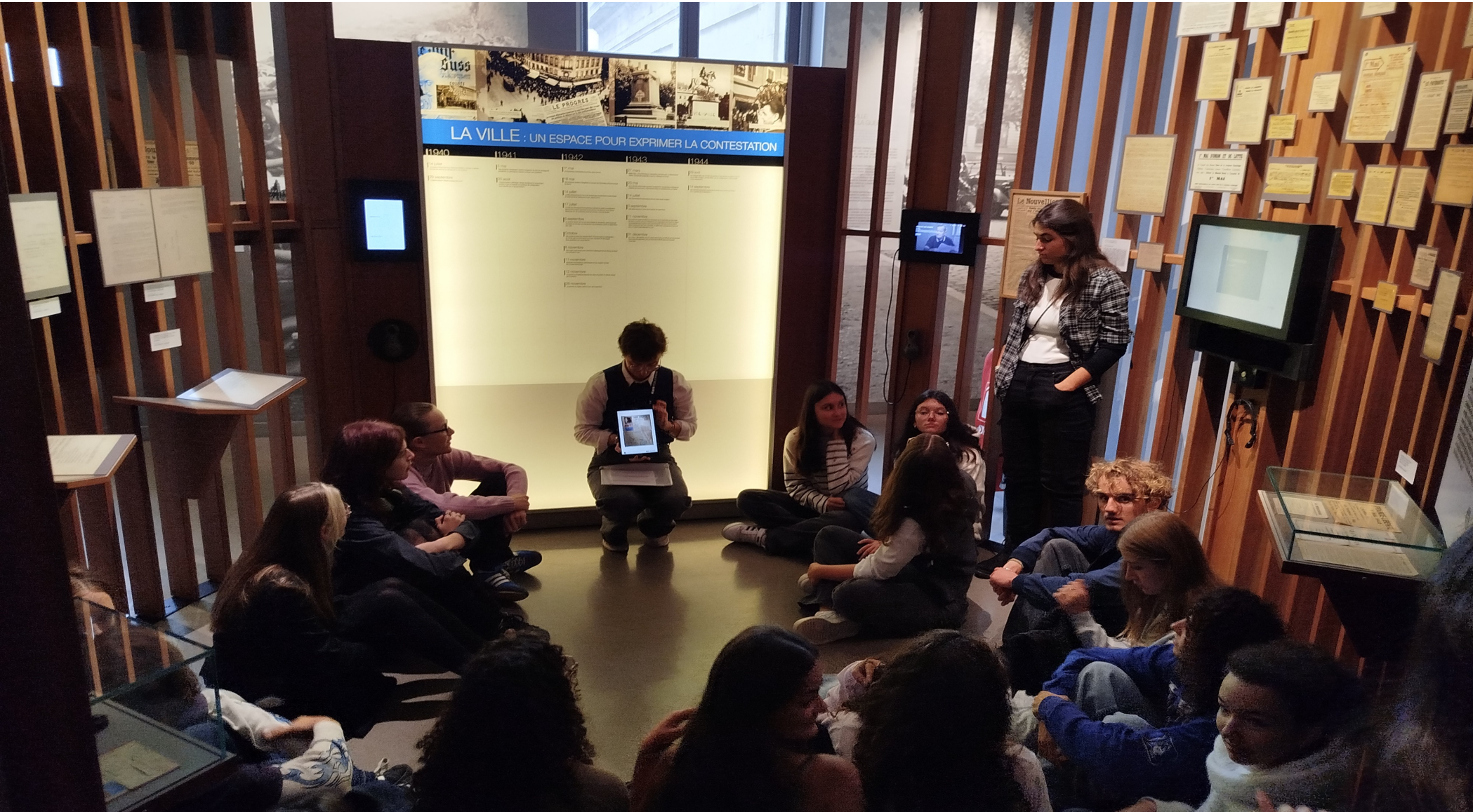 La matinée a débuté par une visite guidée du Centre d’Histoire de la Résistance et de la Déportation (CHRD). Entièrement menée en anglais, elle a permis aux élèves de découvrir de nombreux aspects de la Seconde Guerre mondiale : les bombardements de Lyon, l’organisation de la Résistance, mais aussi la vie quotidienne durant l’Occupation.